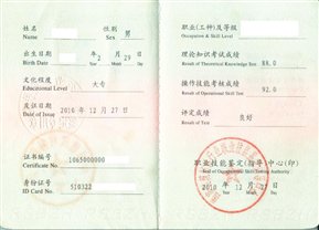 国家职业资格证书通过政府授权的鉴定机构,对劳动者的从业资格进行认定,经考核和技能鉴定合格后,由人力资源和社会保障部颁发的国家级证书该证书实行实名制统一编号备案管理和官网查询(www.zscx.nvq.net.cn)全国通用。其可作为招聘录用、考核晋升、岗位续聘、职称评定、加薪的重依据,同时也是实验室组建、验收、资质认证、工程投标等有力证明
