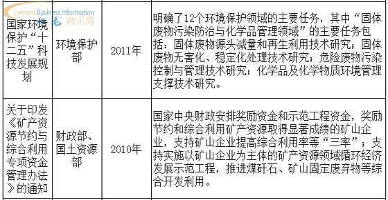 近年来推广工业固体废弃物处理的主要政策