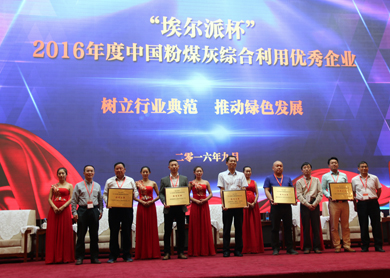 本届大会还对2016年度中国粉煤灰行业优秀企业和杰出贡献人物进行了表彰。大唐同舟科技有限公司、宁夏锦绣集团等12家企业荣获2016年度中国粉煤灰综合利用优秀企业称号、山东华建仓储装备科技有限公司、潍坊埃尔派粉体技术设备有限公司等6家企业荣获2016年度中国粉煤灰行业先进装备企业称号、孙俊民、卓锦德等7位专家和企业家荣获2016年度中国粉煤灰行业杰出贡献人物称号。
