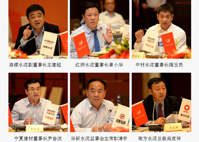会议特邀中国建材集团董事长宋志平、中国中材集团董事长刘志江、原中国水泥协会会长雷前治,来自海螺水泥、中联水泥、南方水泥、台湾水泥、红狮水泥、华润水泥、中材水泥、华新水泥、金隅水泥、祁连山水泥、天山水泥、西南水泥、天瑞水泥、亚泰水泥、宁夏建材、北方水泥、亚洲水泥、山水水泥、葛洲坝水泥共19家大型水泥企业领导人出席了峰会。