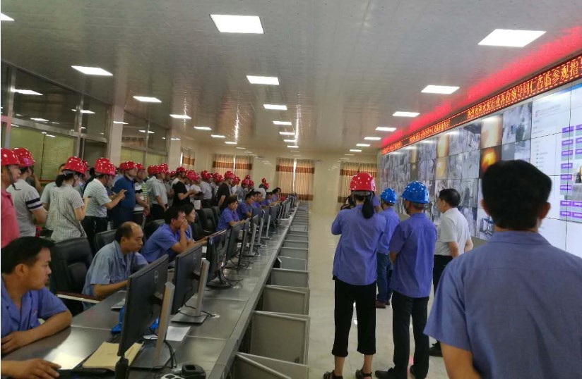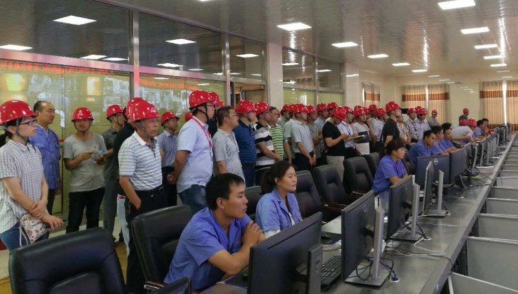 孟电水泥领导携相关员工在中控室迎接参观代表