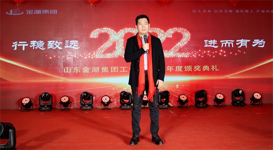 1月22日上午,山东金湖集团以“行稳致远、进而有为”为主题的年度总结暨表彰大会在公司一楼多功能厅隆重举行。集团各职能中心、成员公司干部职工200余人参加会议,集团总裁赵永伟、副总裁许万玺出席会议。