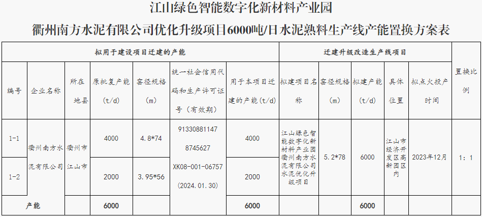 该线是2021年审批通过的产能置换项目,置换详情如下: