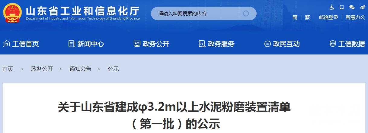 8月7日,根据山东省发展和改革委员会、山东省工业和信息化厅关于山东省建成φ3.2m以上水泥粉磨装置清单(第一批)的公示显示,经此次公示公告无异议的水泥粉磨装置作为山东省建成水泥粉磨装置底数清单。
