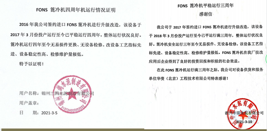 因资源匮乏,日本水泥企业用户对能耗指标的要求也是比较高的。2018年日本水泥企业用户工程技术人员在对丰斯篦冷机设备加工工厂、企业用户经过一个多月的驻厂跟踪调查后选择了使用丰斯篦冷机进行技改。近两年时间内,太平洋水泥集团已经采购了超过7台以上的整机设备,驻友大阪水泥公司也选择了四台整机进行了技改,三菱材料和宇部水泥也在近两年选择了该品牌产品,虽然此次报告我方没有日本用户的详细技改运行数据,但这两家集团选择丰斯篦冷机之前,一直选用的是综合能耗指标最优的德国知名的三代篦冷机,而现在丰斯篦冷机成了这几家日本水泥企业的唯一选择,品牌认可度得到了充分的肯定,这也从侧面证明了丰斯篦冷机设备可靠性和工艺技术指标的先进性。国内某大型水泥集团在2020年技改投运了五台丰斯篦冷机,同期在该集团技改投运的也有几台国内一线品牌的篦冷机产品和德国知名三代机产品,从集团内部的横向月度、年度生产实际数据也真实的反应出了这种工艺技术指标的差别,在此因不便于报道客户的内部生产数据,此次报告中隐去数据部分。该集团已经选择了丰斯篦冷机技改的部分企业,实现了技改前能耗指标在集团排名落后到技改后跃升为先进企业的转变,2021年该集团内部继续有多家单位选择了使用FONS篦冷机技改的技术路线,并进行逐步实施。